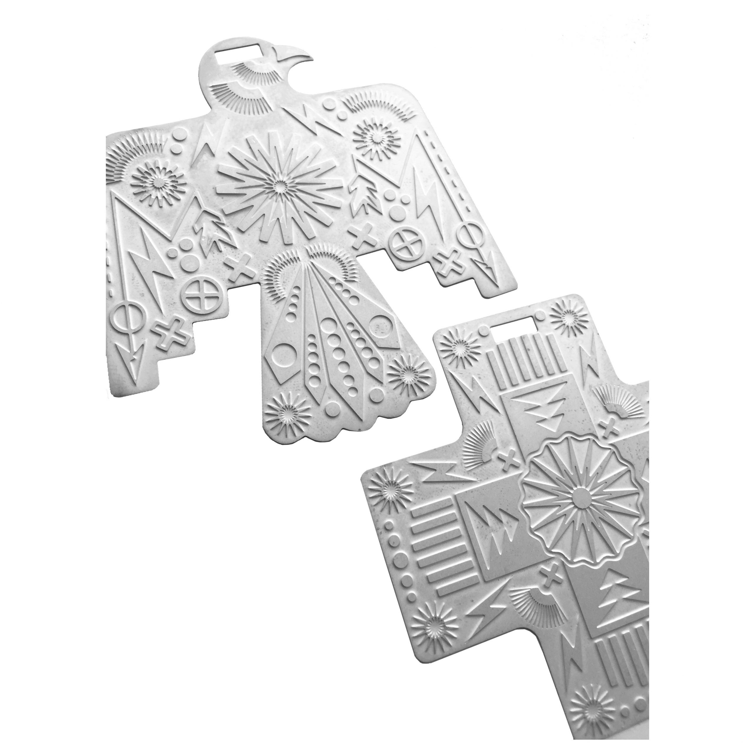 Oversized ‘Thunderbird and Cross’ wall hanging, precision etched in England from a Knight Mills original design.