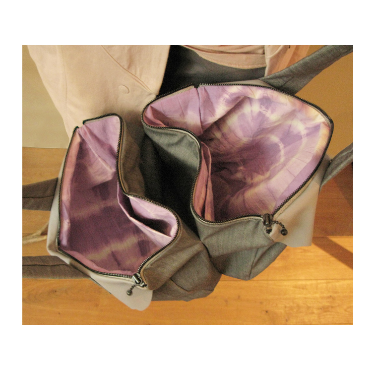 Lined in a hand-tie dyed cotton.