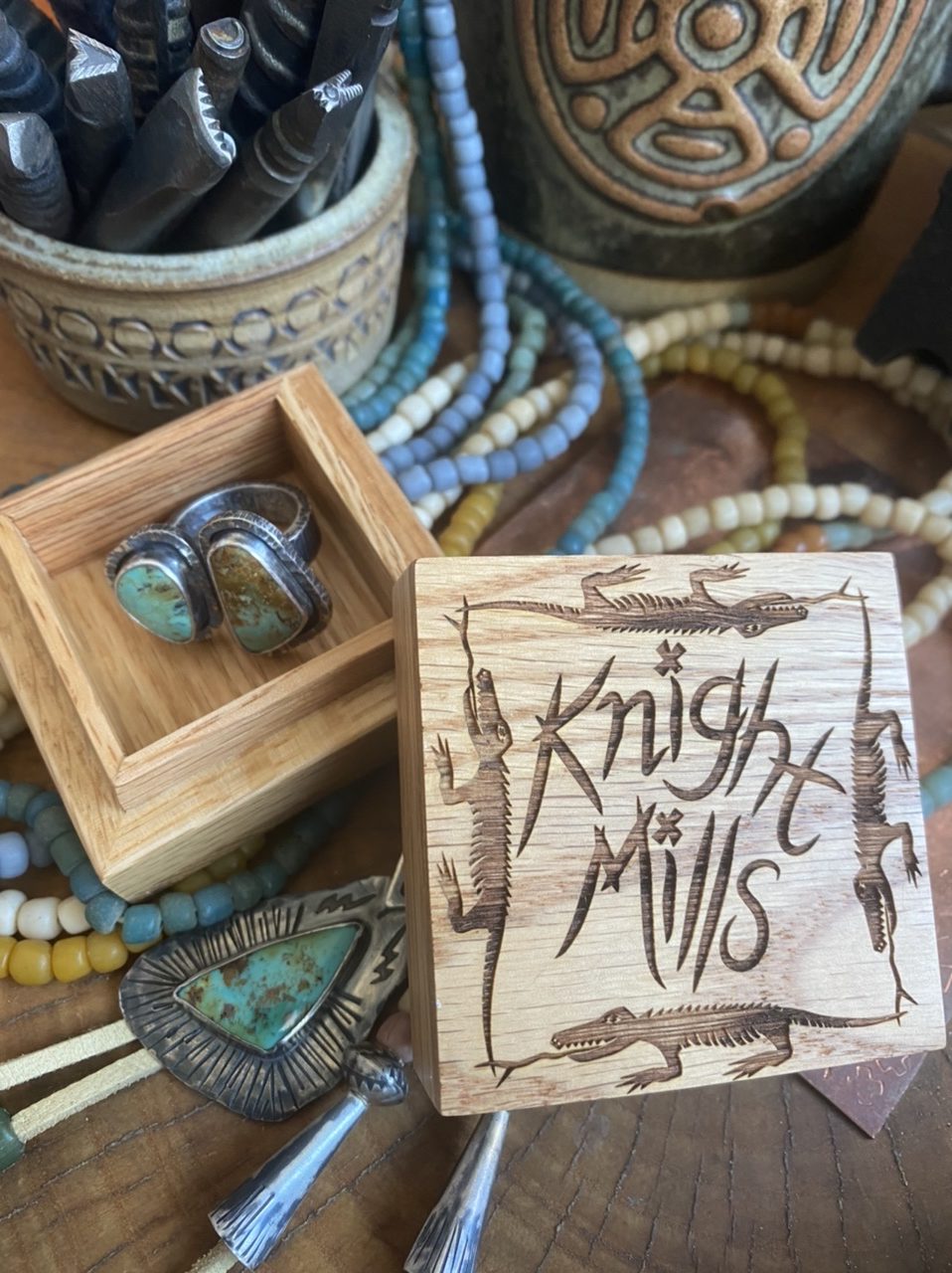 Ring will ship in an etched wood ring box with original artwork postcard.