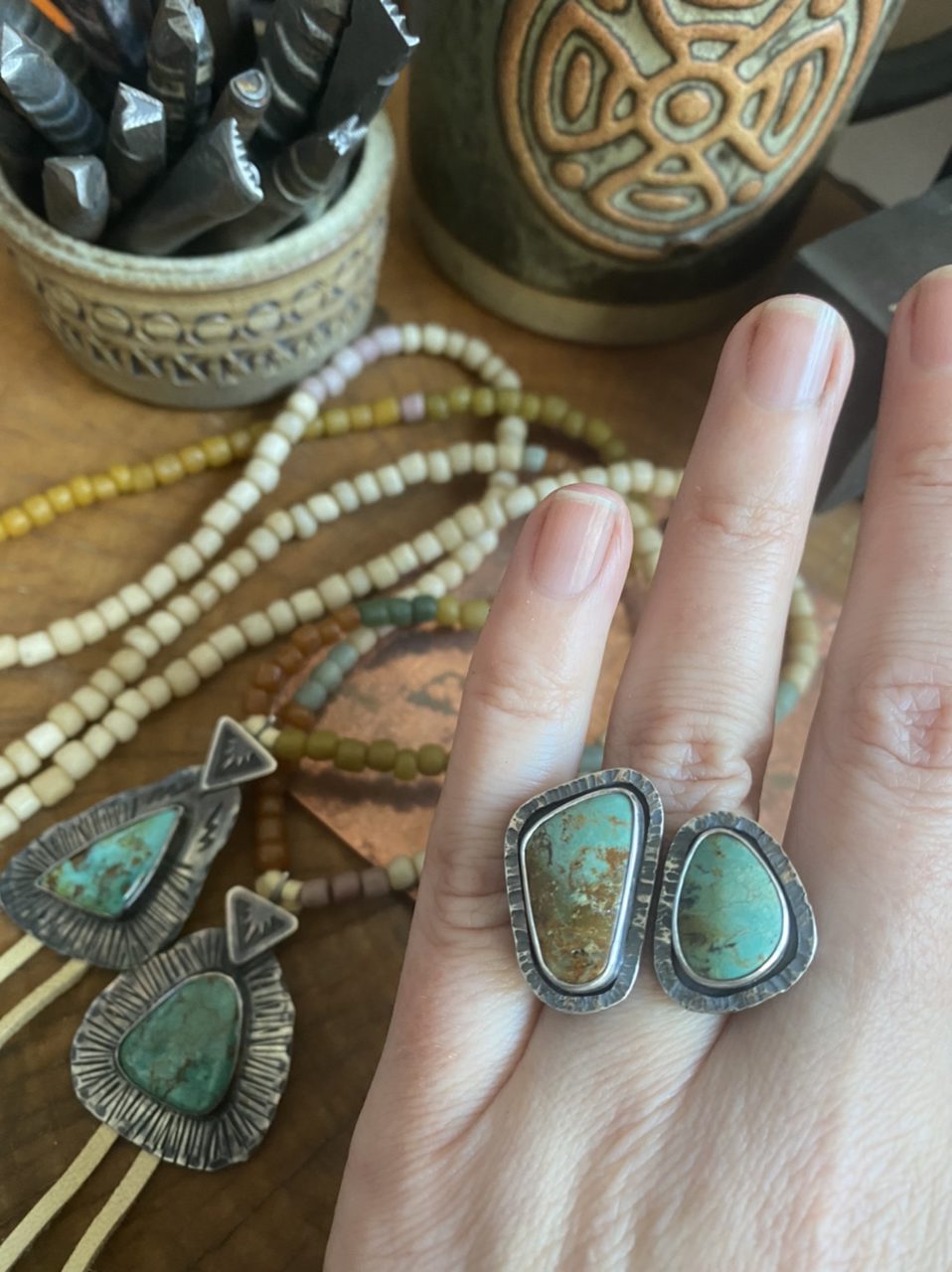 All my silver pieces are very limited, should the item you choose be out of stock at the time of ordering please contact me to discuss options. As the stones and beads within this piece are natural and hand cut, please expect slight variation in shade and shape. Traditional jewellery making techniques are used to make all pieces- piercing, shaping, stamping, soldering, stone setting and polishing etc are all done by me and by hand. No mass made cookie cut production here. Each piece will be different to the next and this is what makes every piece unique. I have an ever changing supply of stones and therefore custom orders are possible. Prices vary due to the carat, type and rarity of the stone, also due to the amount and weight of sterling used in each piece.