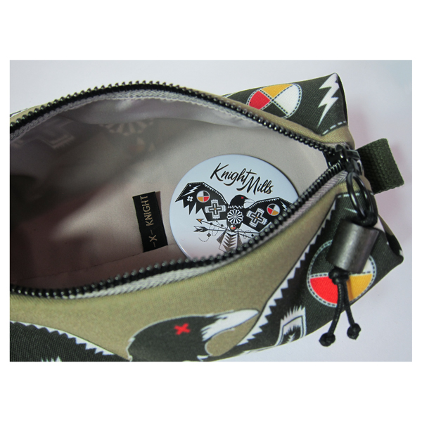 Digitally printed pouch featuring an original Knight Mills’ Elemental Crow design.