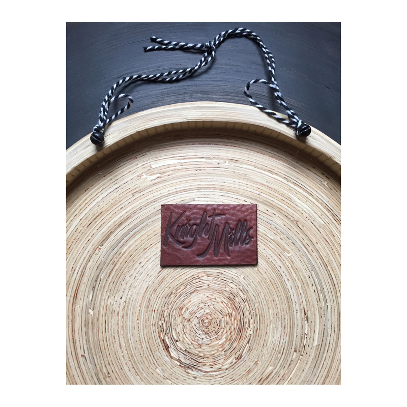 Hanger and embossed leather Knight Mills tag to back side.