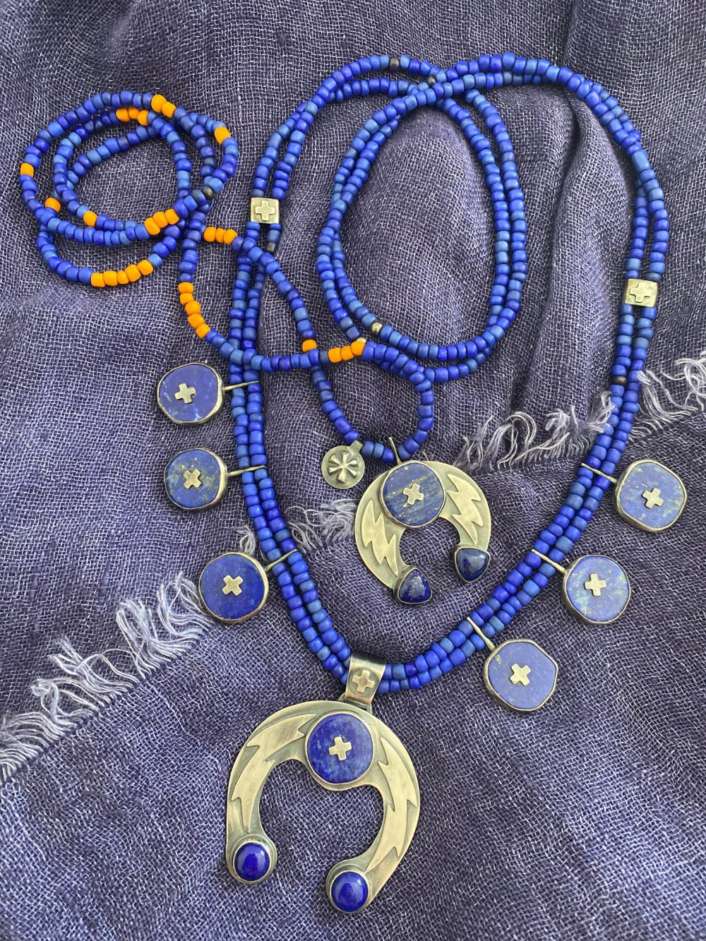 Large sterling silver and Lapis ‘homage’ to a Squash-blossom / Naja necklace.