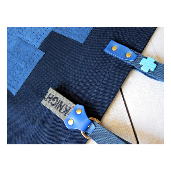 -Indigo linen and cotton patches with hand stitch detail
