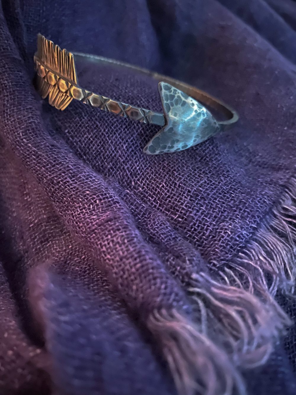 Hand made and hand stamped sterling silver infinity arrow bangle.