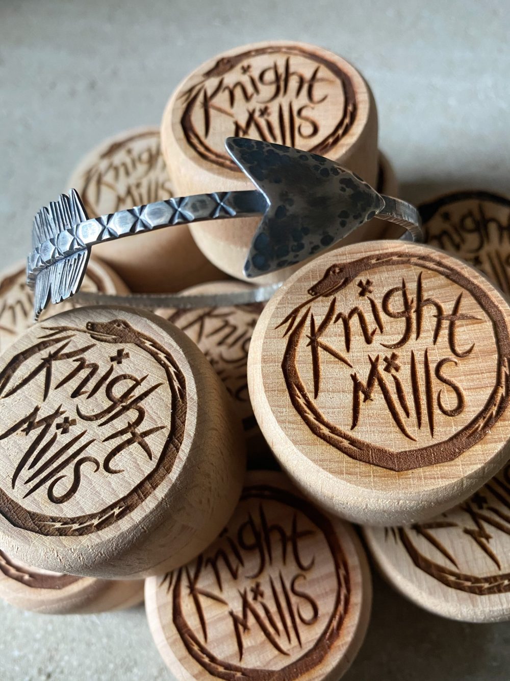 Your bangle will ship in an etched wood box featuring a Knight Mills original design along with a Knight Mills pencil.