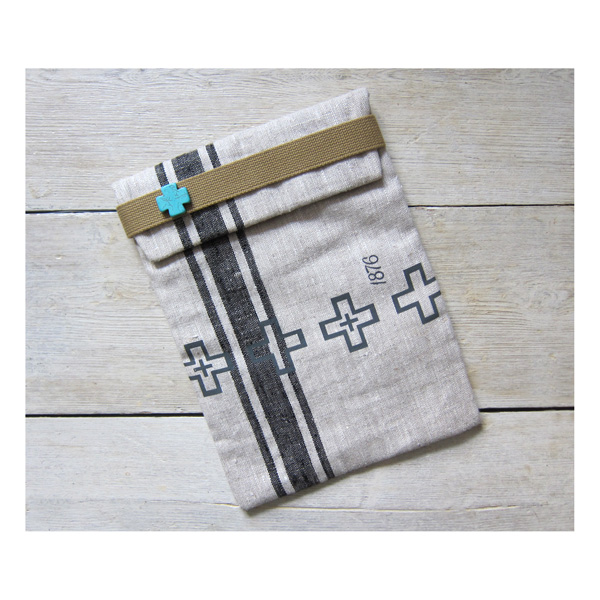The Cross’ iPad slip case is hand printed and made in England on hand loomed light weight European linen.