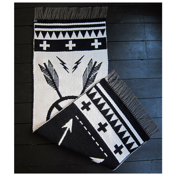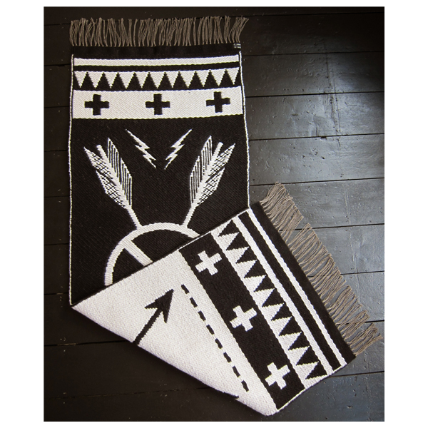 – Woven in wool by hand on a one-of-a-kind Jacquard loom