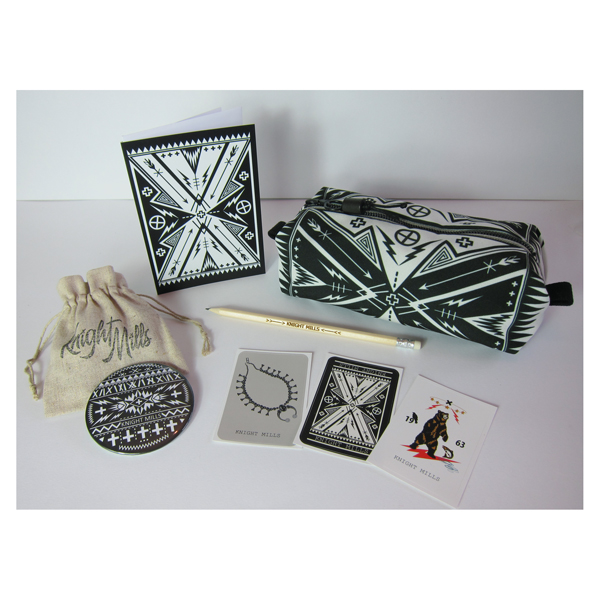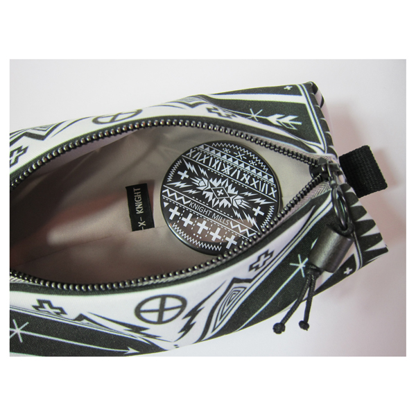 Digitally printed pouch featuring an original Knight Mills’ Piercing the No’ design (bone base).