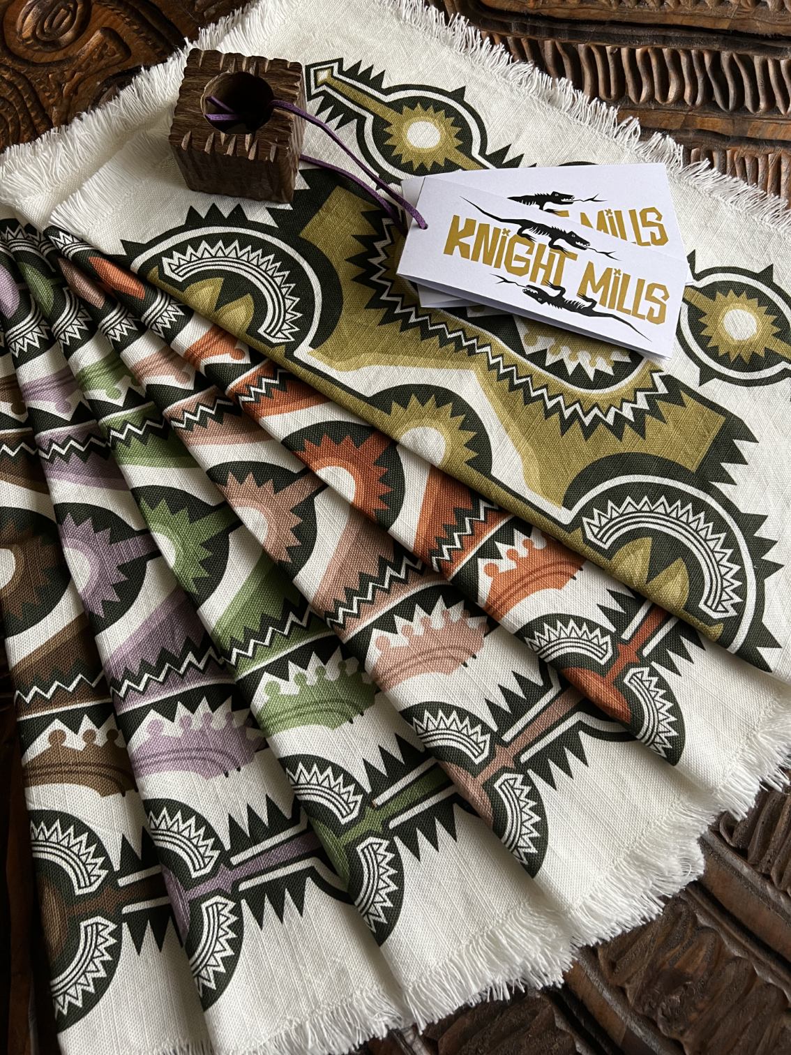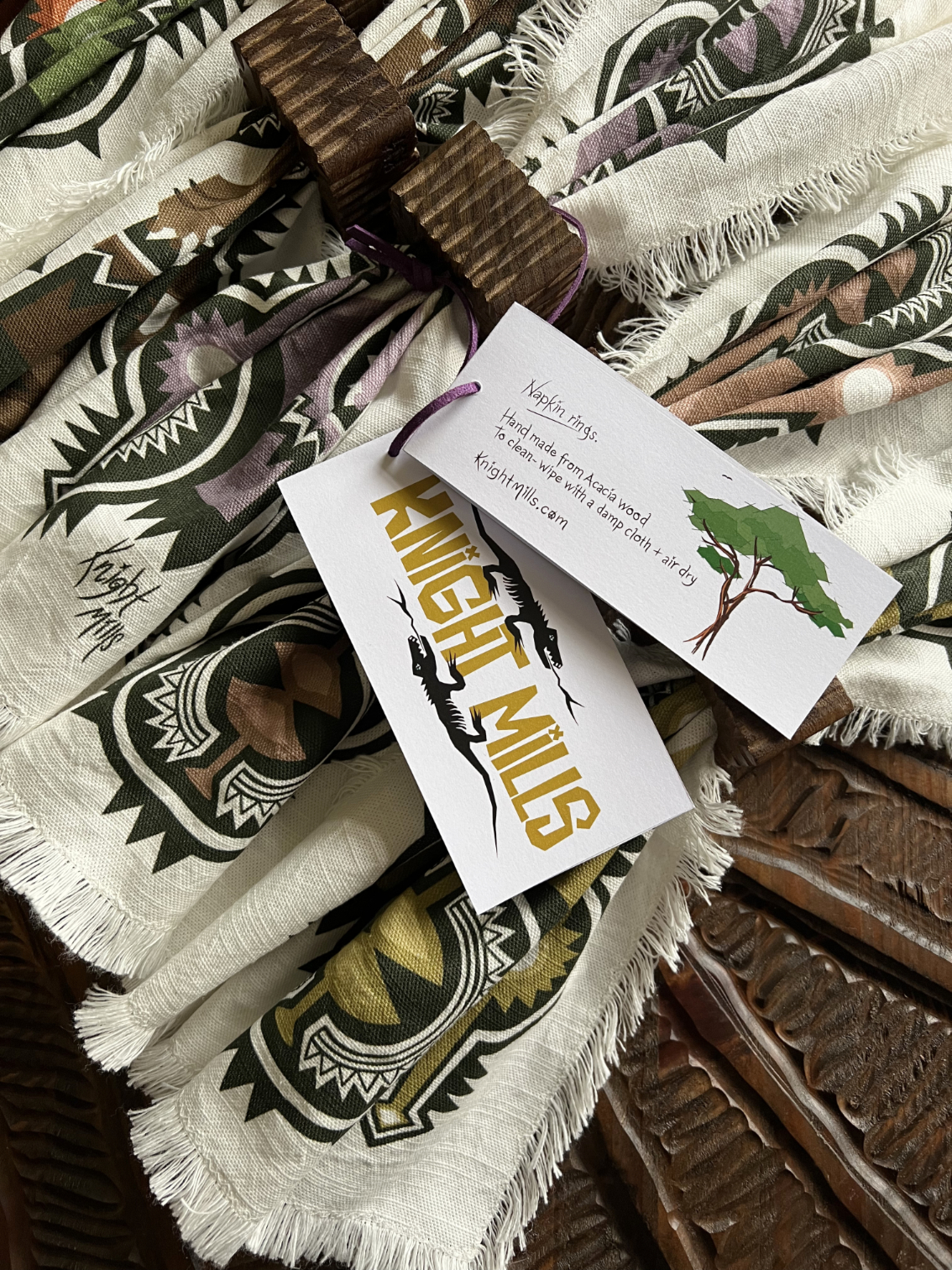 6 Napkins + 6 rings will ship with a couple of Knight Mills greetings cards.