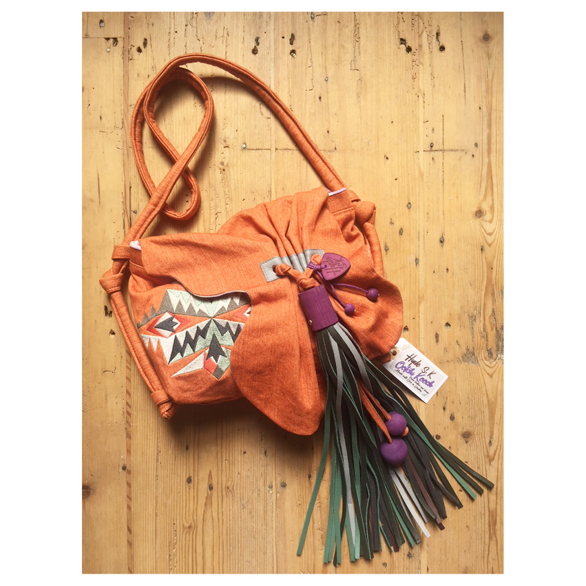 Lined in a hand-tie dyed cotton, with small internal slip pocket.