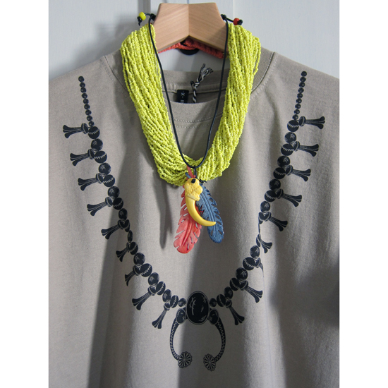 ‘Squash Blossom’ on desert taupe coloured t-shirt