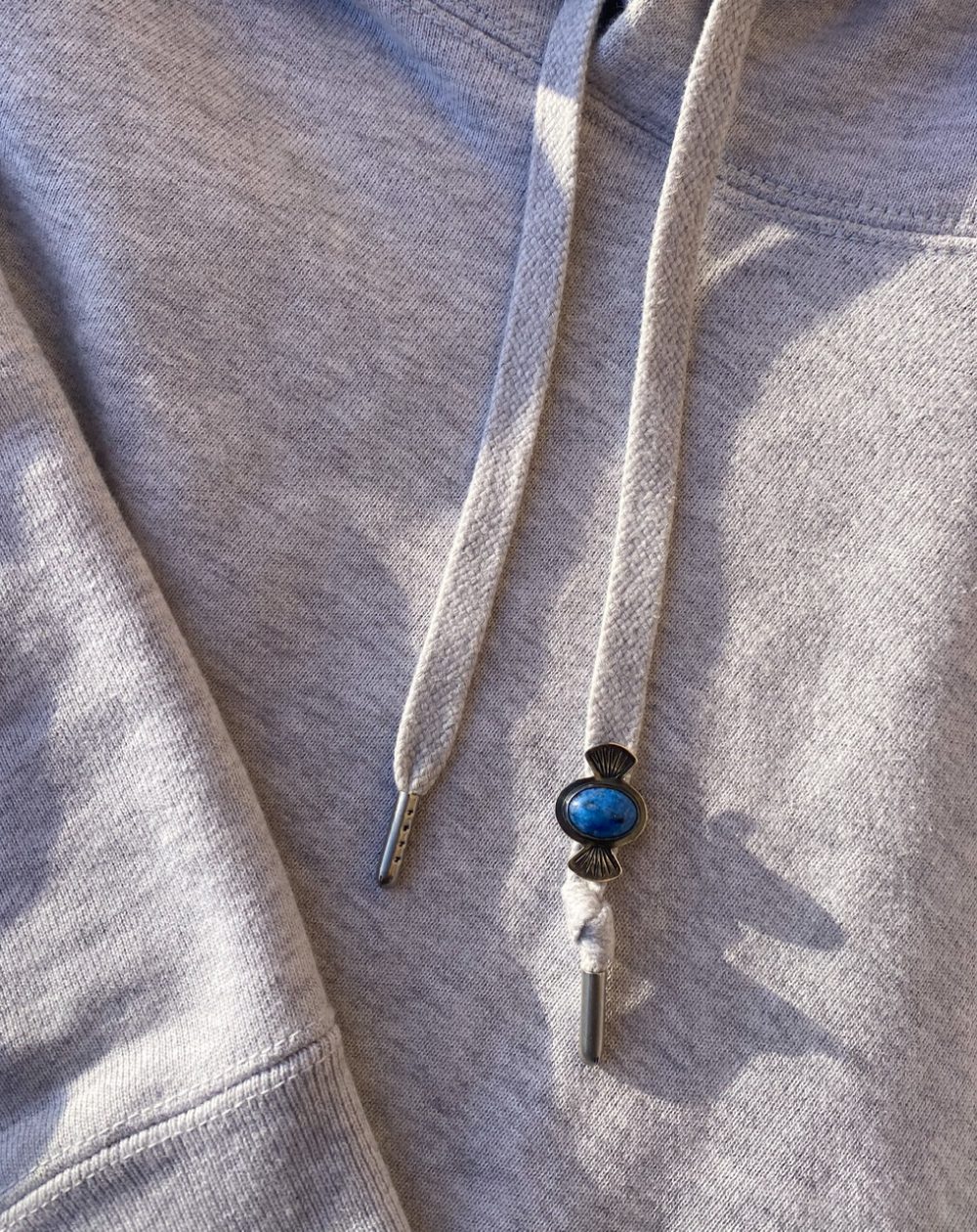 Hand cut and hand stamped sterling silver 925 and Denim Lapis Lazuli bandana / sweatshirt drawstring bead.