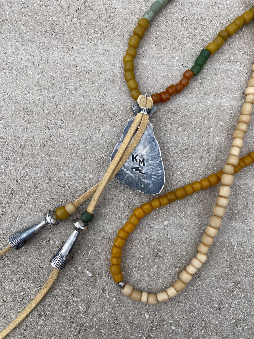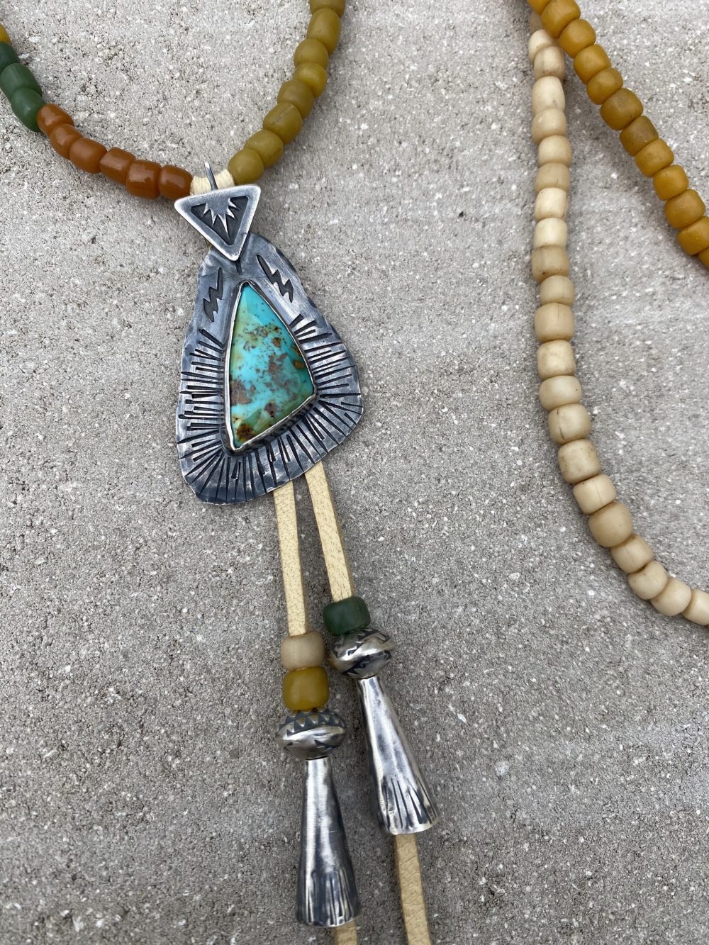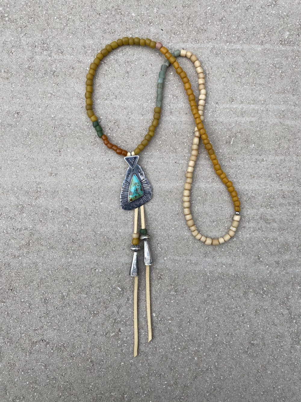-Strung on a strand of rare and beautiful hand-made trade style glass beads.
