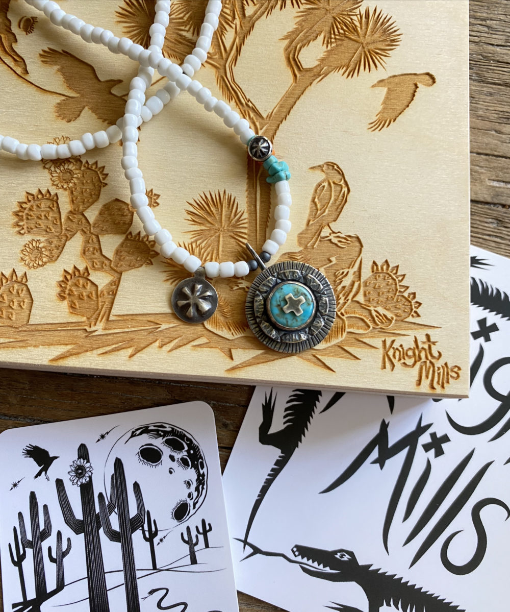 PACKING- Necklace comes in a wooden gift box featuring a Knight Mills original design.