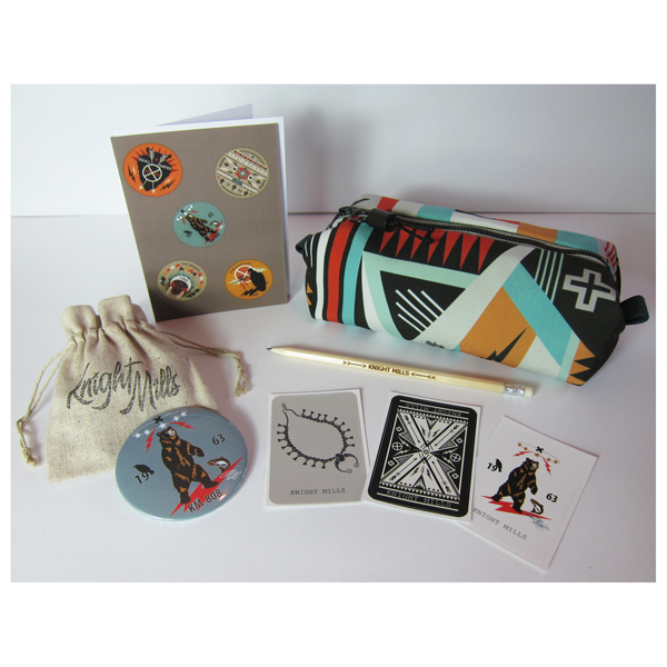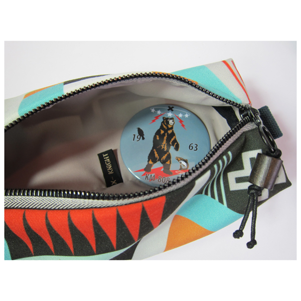 Digitally printed pouch featuring an original Knight Mills’ design inspired by inlaid Zuni’ jewellery .